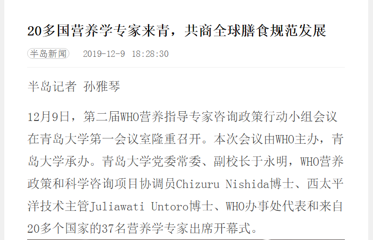 20多国营养学专家来青,共商全球膳食规范发展